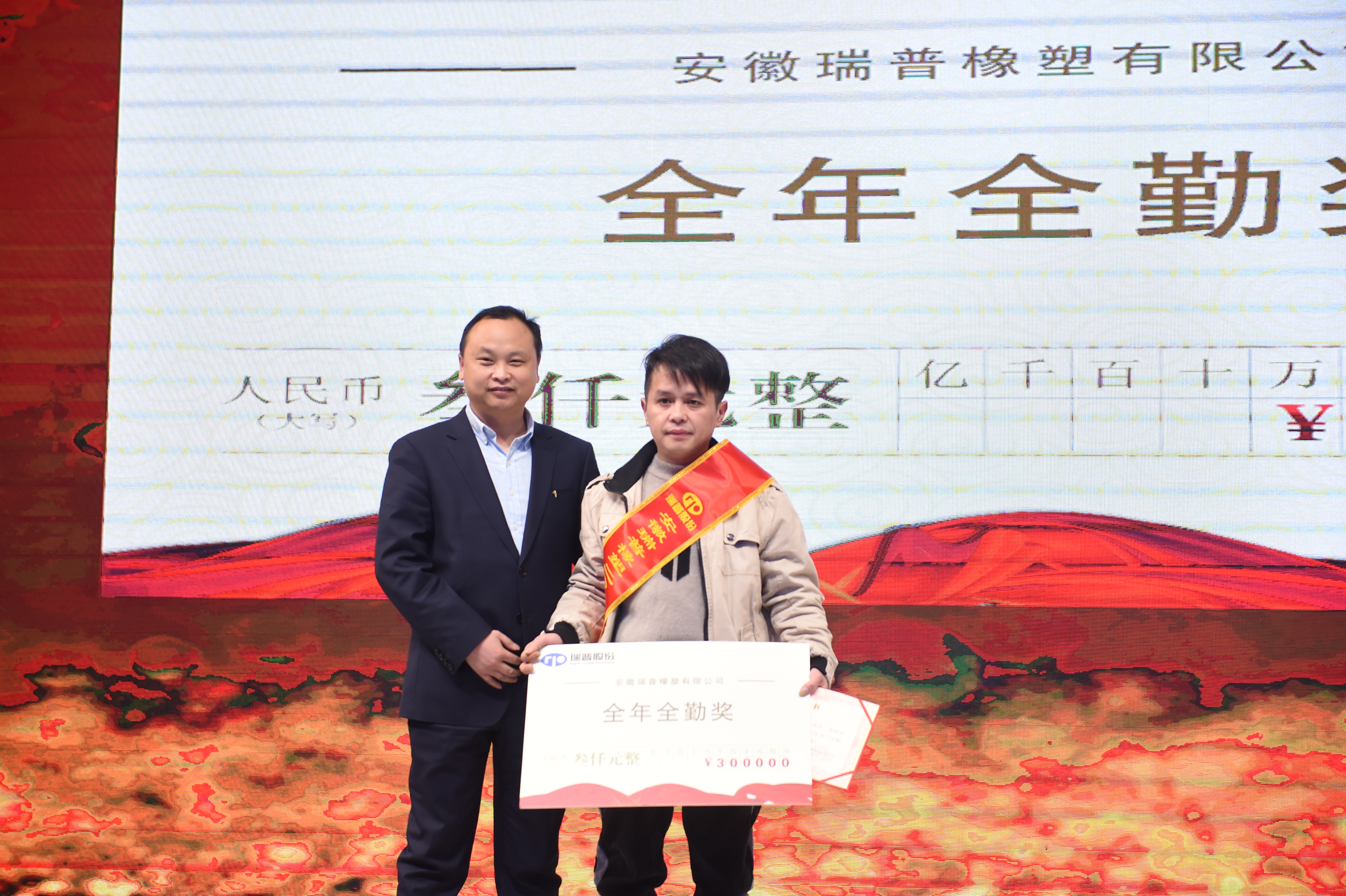 龍騰虎躍慶盛事,馬到功成事業興,安徽瑞普橡塑有限公司年會由國際貿易部經理和人力資源部經理擔任主持人,瑞普2024年會在倆位主持人簡單而又大氣的開場白下正式拉開序幕。